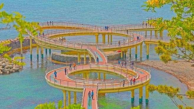 평균 높이 7m의 다리 위에서 내려다보는 동해의 파노라마는 그 자체로 압도적이다. 왕복으로 거의 1km에 달하는 길을 걷다 보면, 시원한 바닷바람이 온몸을 스친다.