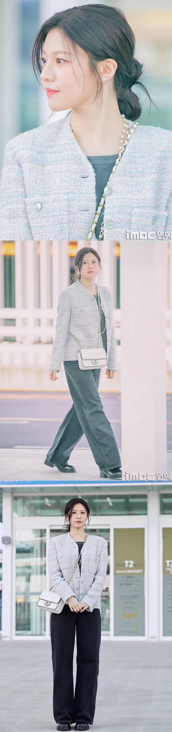 올해 1월, 인천공항에 등장한 고윤정은 클래식한 트위드 재킷과 와이드 블랙 팬츠로 우아하면서도 캐주얼한 공항패션을 선보였다. 여기에 화이트 크로스백을 매치해 럭셔리한 분위기를 더했다.
