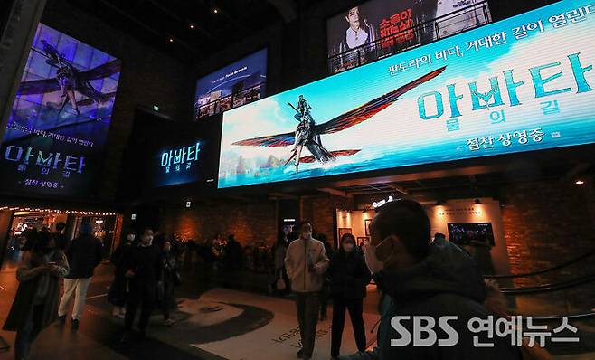 '아바타2'는 지난 14일 개봉해 3일 만에 100만, 5일 만에 200만, 개봉 7일 만에 300만 관객을 돌파했다. 2주 차 평일에 접어들며 관객 수가 20만 명 대 중반으로 떨어졌지만 추세는 나쁘지 않다.