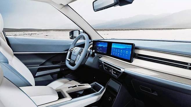 KGM 토레스 EVX는 전장 4,715mm, 전폭 1,890mm, 전고 1,735mm, 휠베이스 2,680mm의 차체 구성을 갖췄습니다. 수치상 휠베이스는 동급 대비 짧은 편이지만, 높은 전고 덕분에 실내 개방감이 뛰어나다는 반응이 많습니다. 2열 시트를 폴딩하면 약 1,662L에 달하는 광활한 적재 공간을 확보할 수 있어, 동급 경쟁 모델보다 실사용 면에서 훨씬 여유롭다는 평가를 받습니다. 캠핑이나 차박 등 아웃도어 활동을 즐기는 패밀리 SUV 수요와 완벽하게 맞아떨어지며, 기본으로 제공되는 실외 V2L 기능은 활용도를 더욱 높여줍니다.