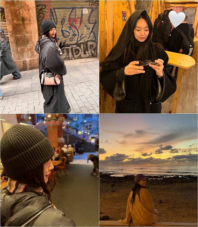 공개된 사진 속 신민아는 이국적인 풍경 속에서 여전한 미모를 뽐내고 있다. 검은 패딩을 입고 비니를 쓴 편안한 차림으로 길거리를 걷거나, 편안한 티셔츠에 캡모자를 매치하고 노을이 지는 바다를 바라보고 있다.