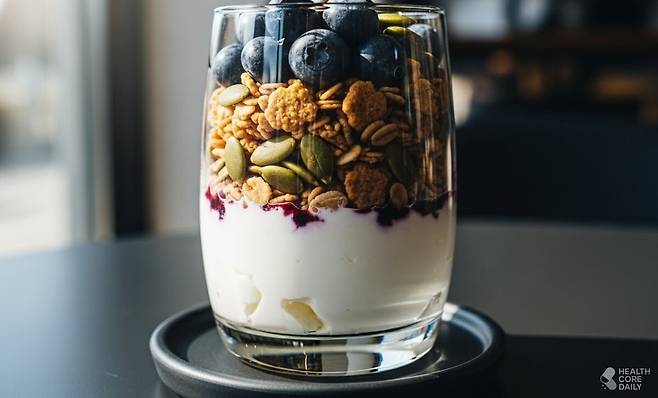 그릭 요거트나 당을 첨가하지 않은 플레인 요거트를 바탕으로 베리류, 그래놀라, 견과류, 씨앗류 등을 조합하면 된다. 베리류는 항산화 성분이 풍부하고, 견과류와 씨앗류는 좋은 지방과 단백질 공급원이다. 한 컵 정도만 적당히 먹으면, 섬유질과 칼슘 섭취까지 챙길 수 있다.