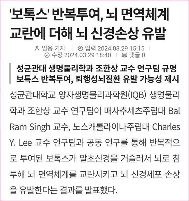 보톡스가 치매를 일으킬 수도 있다고 합니다.