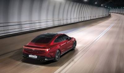 쏘나타 디엣지는 현대차의 최신 디자인 철학이 반영되어 심리스 호라이즌 램프(수평형 LED)가 강렬한 인상을 줍니다. 공차중량 1,560kg의 안정적인 차체는 고속 주행 시에도 흔들림 없는 승차감을 제공합니다.