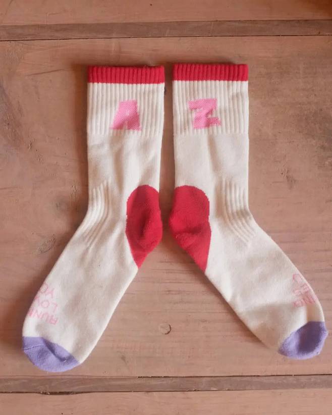 핏 허거스(Feet Huggers) 양말은 이름처럼 정말 발을 꼭 안아주는 느낌이 든다. 부드러운 메리노 울이 쾌적하게 발을 감싸주고, 통기성도 뛰어나 장거리 러닝에도 부담 없다. 귀여운 하트 자수가 뒤꿈치에 포인트처럼 더해져 보기만 해도 기분이 좋아진다. ‘Running Loves You’라는 메시지가 새겨진 이 양말은 그야말로 당신의 발걸음에 따뜻한 응원을 건네는 존재다. 구매는 여기.(https://tinyurl.com/2zn6h8mu)