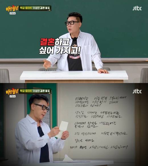 이상민은 JTBC '아는 형님'에서 미래 배우자에게 보내는 편지를 통해 공개 프러포즈나 마찬가지로 고백을 하기도 했는데요.