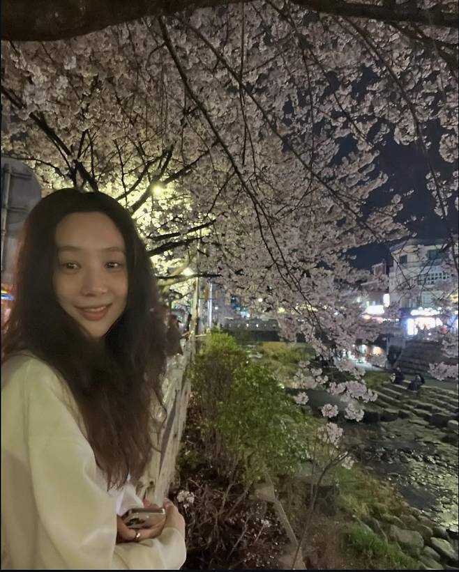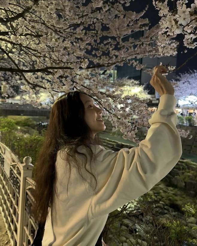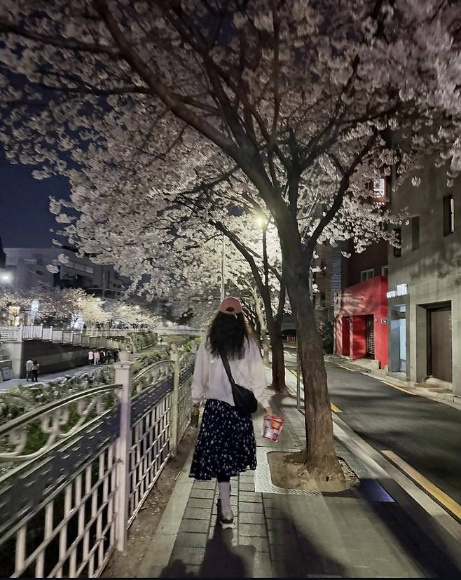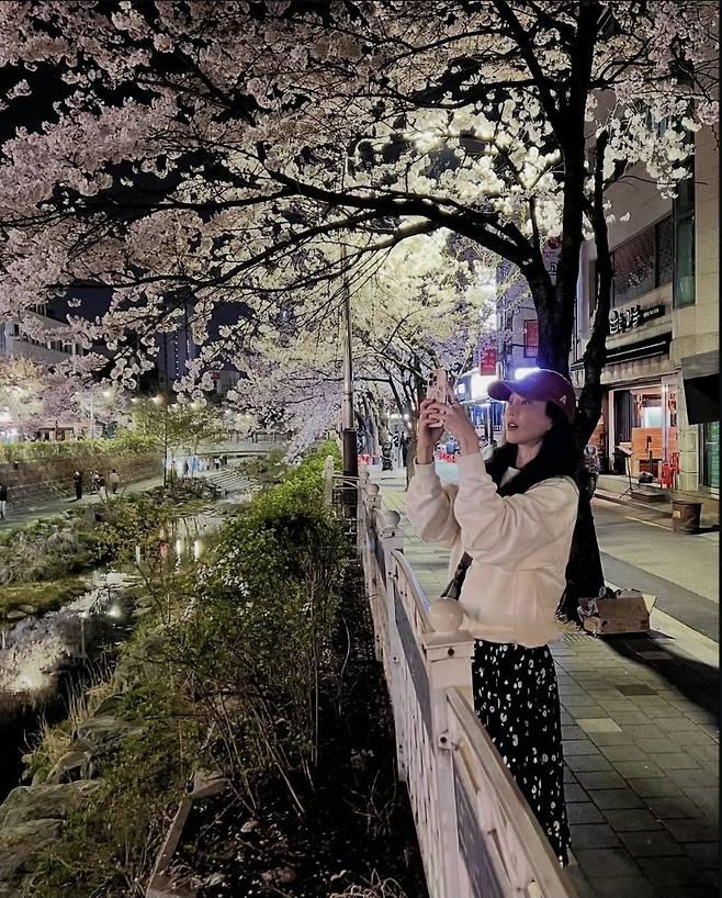 벚꽃보다 더 화사한 정려원의 야간 산책 스타일은 일상 속 힐링 패션으로 완벽하게 자리매김했습니다.