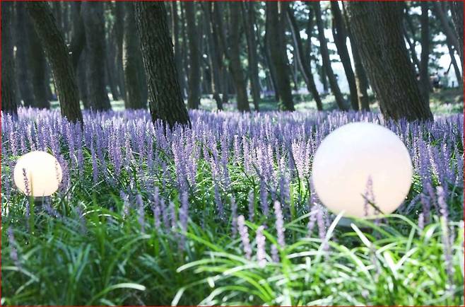 낮에는 울창한 송림과 보랏빛 맥문동 꽃길을 거닐며 여유를 만끽하고,