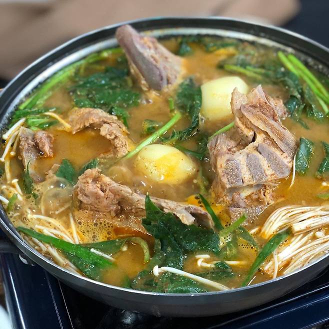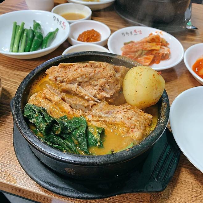 점심시간이면 이곳 국밥을 찾아온 인근 직장인들로 발 디딜 틈 없는 맛집. 뚝배기 감자탕인 ‘뚝감’이 대표 메뉴로 김치 삼겹살, 김치찌개, 감자탕 등도 인기가 많다. 이곳 뚝감은 국내산 돼지뼈를 사용하기 때문에 뼈에 붙은 살코기가 부드러우면서도 잡내없이 깔끔하다. 큼직한 돼지등뼈와 우거지, 통감자 한 알을 올려 주는 구색에 국물도 넉넉하게 넣어 준다. 진하면서도 기름지지 않고 깔끔한 맛의 국물은 밥 한 끼를 뚝딱하기에 제격. 기본 찬은 김치, 깍두기, 고추, 마늘쫑, 겨자소스로 단출하지만 충분하다. 이곳은 국밥에서 중요한 또 다른 한 축인 밥을 지을 때도 허투루 하지 않는다. 일주일 이내에 도정된 경기미만을 사용해 하루 12번 밥을 짓는다. 윤기나는 쌀밥은 밥만 먹어도 맛있을 정도니 뜨끈한 국밥 한 상을 원하는 손님에게는 이곳만 한곳이 없다.