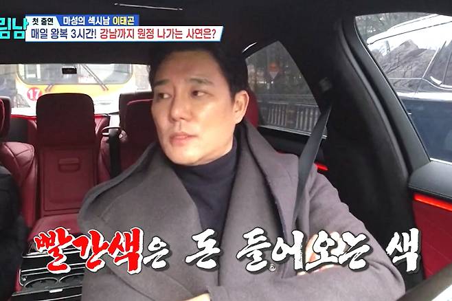 카 시트와 조명 등 온통 빨간색으로 가득 찬 내부에 이태곤은 "빨간색이 좋아서 이렇게 해놨다. 그냥 좋다. 낚시복도 빨간색 많이 입는다. 빨간색이 돈 들어온다고 하지 않나"라며 각종 미신과 사주를 '맹신'하는 모먼트를 보여 모두를 놀라게 했습니다.