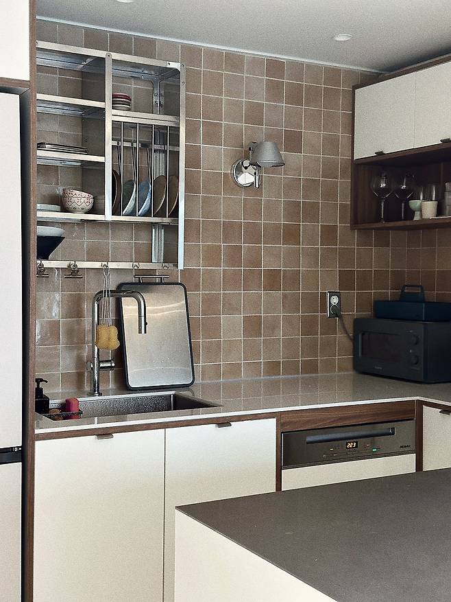 근데 또, 다른 문제가 있었어요. '그릇을 어디에다가 놓을 건데?'였죠. 아무리 상부장을 없애기로 했다지만, 그릇을 사용한 후 놓을 곳은 있어야 하니까요. 매번 그릇을 다 닦고 수납장 안으로 넣어야 한다면 부엌에 쪼그려 앉아 울게 되거나, 그릇들이 싱크대 상판 위에 아무렇게나 널브러질 것 같다고 생각했어요.