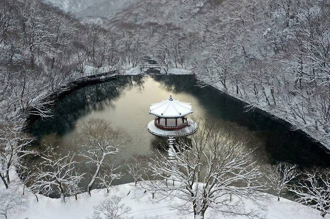 ‘봄 백양, 가을 내장’이라는 말로 유명한 ‘내장산’에서는 눈꽃이 펼쳐지는 풍경을 배경으로 특별한 트레킹을 즐길 수 있다.