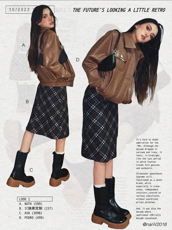 요즘에는 기장감 확 짧아지고 a라인인 귀여운 느낌의 미니스커트랑 매치하는걸 더 많이본것같기도 함