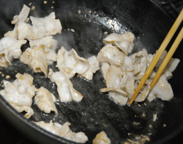 삼겹살을 사용할 때는 고기 자체에 기름이 많기 때문에 불필요한 기름을 일부 제거해주는 것이 중요하다. 한입 크기로 자른 삼겹살을 팬에 기름을 거의 두르지 않고 중약불에서 천천히 볶아주면 고기에서 자연스럽게 기름이 나오기 시작한다. 이 과정에서 나온 기름은 키친타월로 한 번 닦아내면 훨씬 깔끔한 맛을 낼 수 있다.