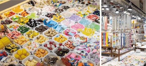 다양한 패션용품을 판매하는 동대문종합시장 5층에는 다양한 액세서리 부자재 가게들이 모여있습니다. 아이들도 좋아하는 비즈 반지나 팔찌, 키링, 무선 이어폰 케이스를 만들 수 있는 각종 재료를 판매하고 있어 가족 방문객들과 외국인들에게도 인기가 많습니다.