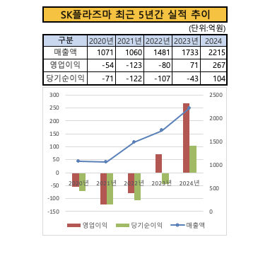 조 단위 가치 평가엔 최근 2~3년 실적 개선세가 뒷받침됐다. SK플라즈마는 2019년부터 4년간 적자를 기록하다 2023년 연매출(별도기준) 1733억원, 영업이익 71억원을 올리며 흑자 전환에 성공했다.