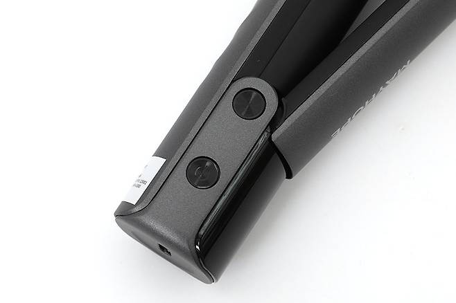 윗면의 아래쪽 끝부분에는 일부분만 유광 블랙으로 된 영역이 있는데, 이 부분은 온도와 배터리 상태 등을 표시해주는 디스플레이를 내장한 곳이다.