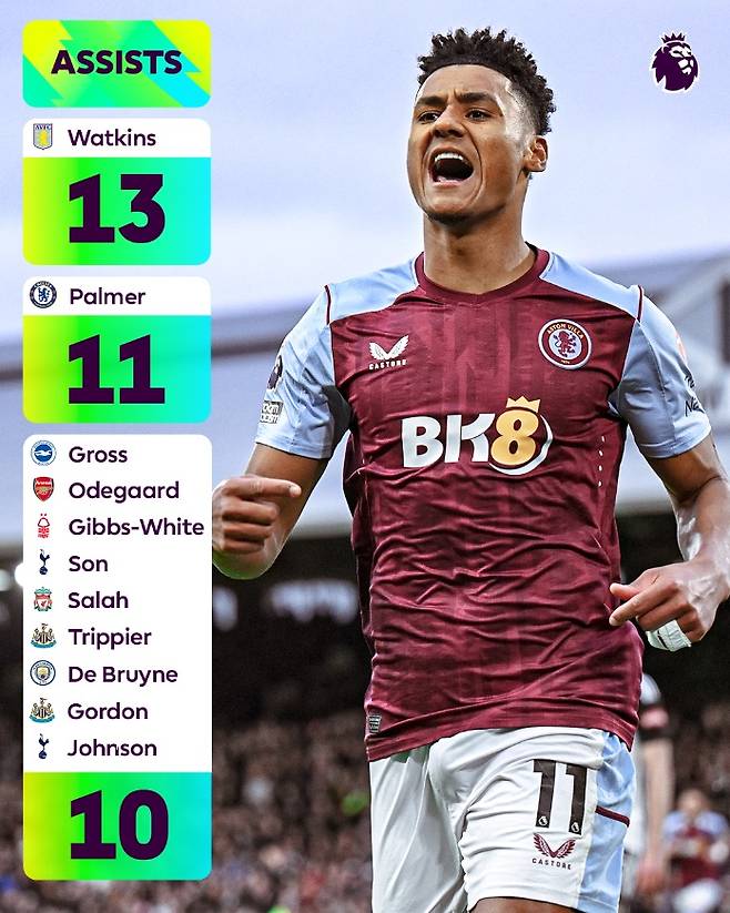 프리미어리그는 25일(한국시간) 공식 사회관계망서비스(SNS)를 통해 "이 9가지 지표에서 최고의 성적을 거둔 프리미어리그 스타 중에 놀란 사람이 있는가?"라며 2023-24시즌 각종 스텟에서 상위권을 차지한 선수들을 공개했다.