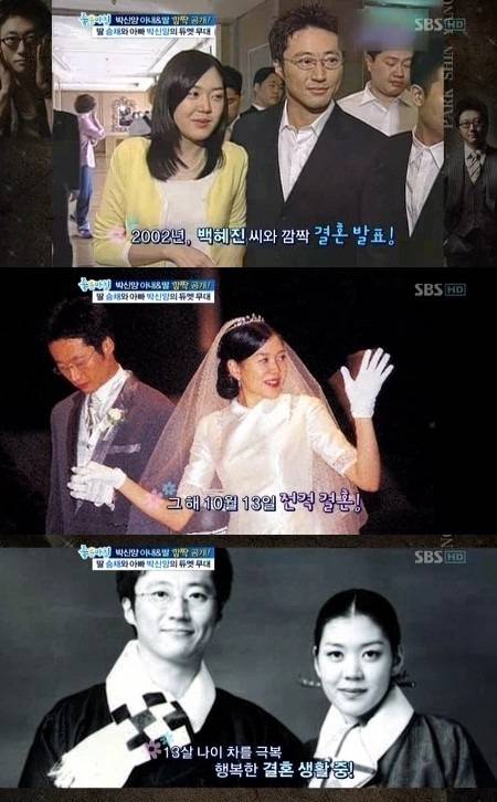 박신양과 백혜진 씨는 만남 6개월 만에 결혼에 골인했다. 하지만 결혼 후, 아내를 둘러싼 과거 혼인신고 이력이 알려지며 곤혹을 치르기도 했다.