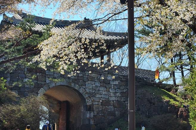 성곽과 벚꽃을 배경으로 인생샷 한 장 남겨보세요. 성벽과 벚꽃, 그리고 도심의 경관이 어우러져 만들어내는 풍경은 정말 환상적입니다. 역사적인 장소에서 벚꽃을 즐긴 후, 내려와서 맛있는 백숙 한 마리도 먹고 가세요~