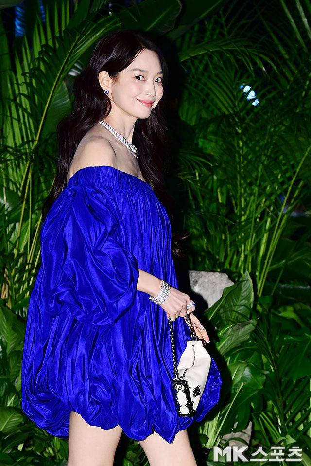 신민아는 볼륨감 있게 퍼지는 오프숄더 디자인의 코발트 블루 드레스를 선택해 시선을 사로잡았으며, 유니크한 실루엣이 자유롭고 여유로운 분위기를 배가시켰습니다.