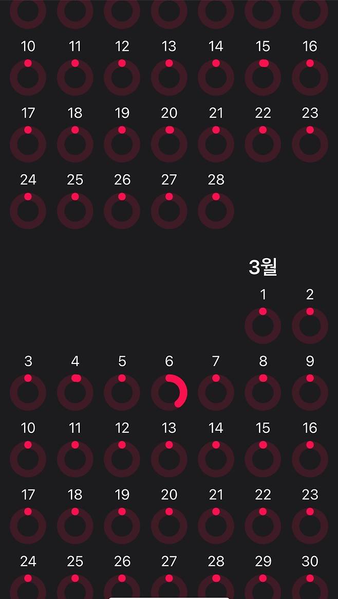 하루 평균 15걸음(화장실 폰 안 들고 가니 50걸음 예상)