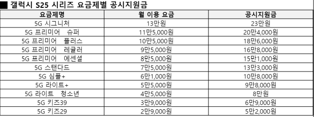 갤럭시 S25 시리즈 구매 고객이 태블릿이나 스마트워치 등 추가 디바이스를 더욱 합리적으로 사용할 수 있도록 요금제 혜택도 강화됐다. 5G 시그니처 또는 5G 프리미어 슈퍼 요금제를 이용하는 고객이 다음달 31일까지 요금할인 서비스를 신청하면, 태블릿 또는 스마트기기 월정액 상품을 할인받아 이용할 수 있다. 고객이 태블릿 또는 워치 한 대를 요금제와 연결할 경우 최대 2만 2000원, 한 대를 더 연결할 경우 추가로 1만 1000원을 할인받을 수 있다.