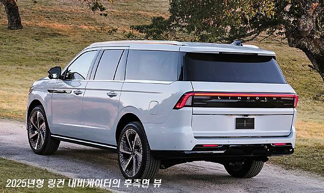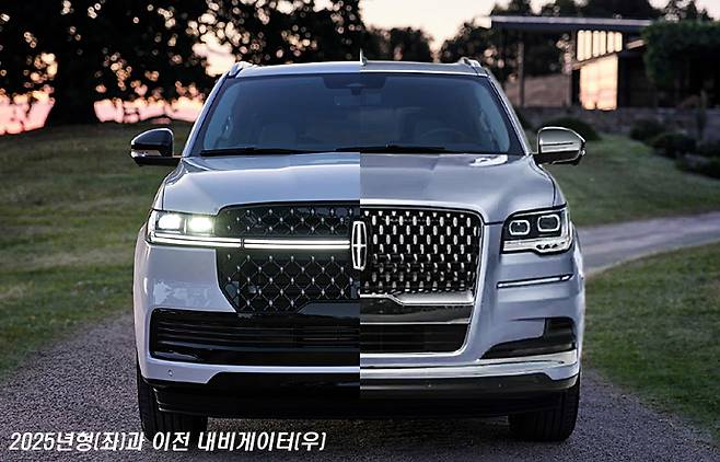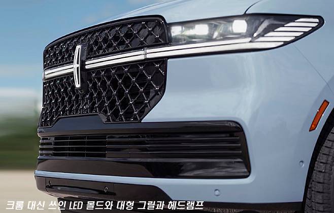 이 글에서는 그 모습을 보여드릴 수 없지만, 웹 서핑을 조금 해보시면 2025년형 링컨 내비게이터의 LED 몰드가 다양한 패턴으로 번쩍거리며 점등되는 동영상을 보실 수 있습니다. 반면에 라디에이터 그릴 자체는 전체를 검은 색으로 마감해서 그다지 강조하지는 않는 듯이 보이기도 합니다.