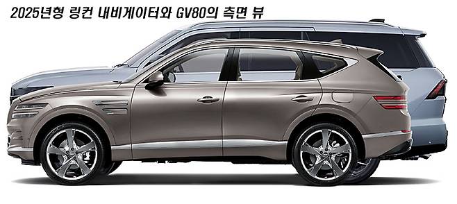 국산 SUV중에서 가장 크다고 알려져 있는 GV80의 차체 크기는 전장×전폭×전고 4,945×1,975×1,715(mm)에 휠베이스 2,955mm이니, 신형 내비게이터는 길이는 무려 389mm 길고, 174mm 넓고, 266mm 높습니다. 휠베이스는 표준형임에도 156mm 깁니다. 내비게이터의 장축형은 길이가 5,636mm 이니 거의 소형 버스 수준입니다.
