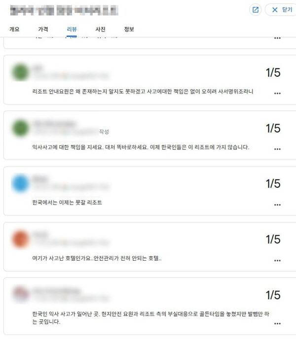 한편 6월 30일 A씨는 글을 수정하며 현재 영사관의 도움을 받고 있다는 사실을 전했으며, 소식을 접한 누리꾼들은 해당 리조트의 구글 리뷰를 통해 진상규명을 촉구하고 있습니다.