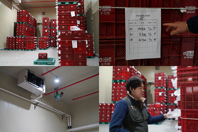 “저장고에서 15일가량 예냉을 해야 합니다. 키위를 따기 전에는 병해충 피해를 확인할 수 없어요. 키위의 병해충인 노린재는 수확 전에는 나무의 영양분을 빨아먹는데요. 수확 후에는 키위의 수분을 먹습니다. 그래서 시간을 두고 경과를 살펴봐야 하죠. 예냉 후에 피해 상태를 확인하고 흠과를 걸러냅니다. 그 이후 본격적으로 선별하죠.”