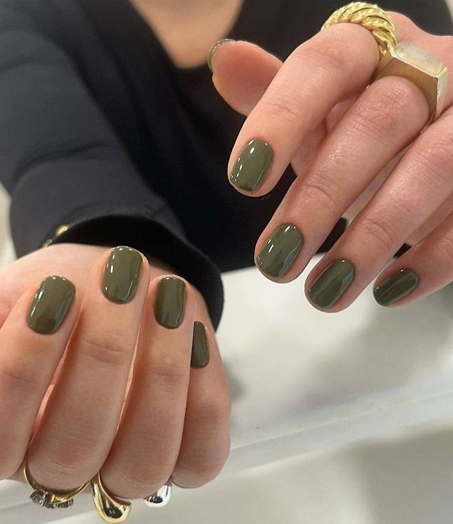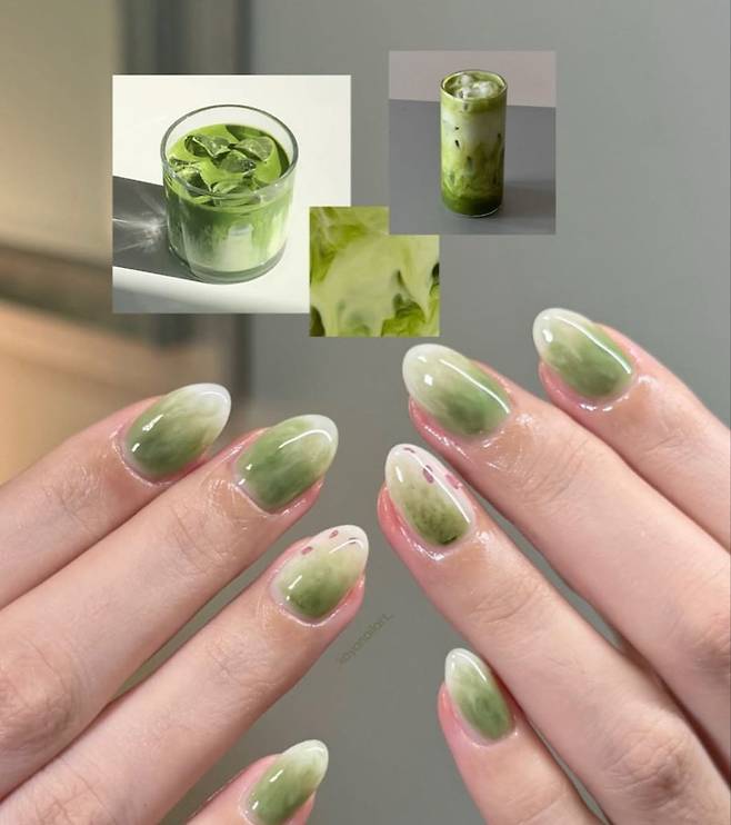 5.올리브 그린 + 말차라떼 네일