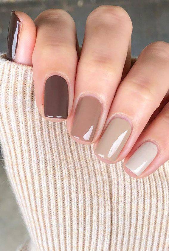 브라운 , 카키 등으 뉴트럴 컬러가 가미된 네일들도 가져와봤습니다