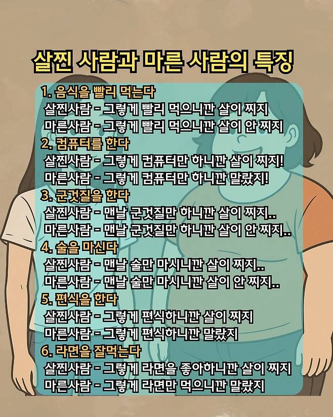 살찐사람과 마른사람의특징