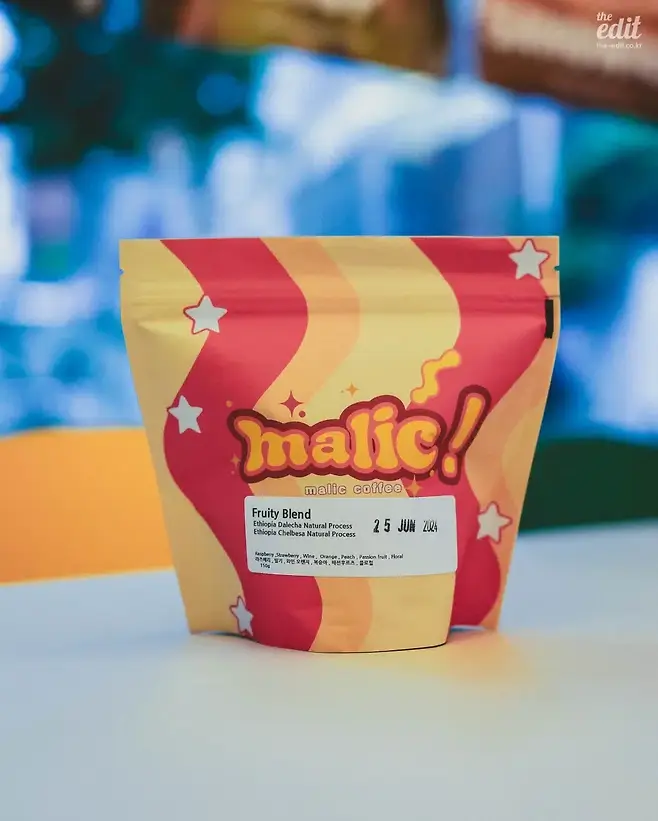말릭커피의 대표적인 블렌딩은 프루티 블렌딩. 새콤달콤한 과일향을 풍성하고 다양하게 표현하기 위해 과일을 연상하는 이름을 사용했다. 특히 산딸기와 오렌지 껍질과 같은 향미가 기분 좋게 느껴졌다. 통상적으로 라이트 로스팅 커피들은 자동머신에서 추출이 어렵다는 편견이 있었는데, 당일 사용한 자동 머신에서 모든 결과물이 만족스러웠다.