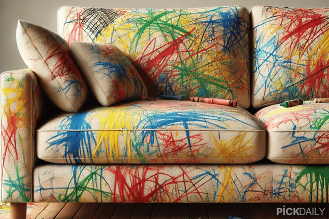 가죽 소파에 낙서를 했을 경우엔 알콜을 사용하는 것은 권장되지 않는다. 알코올은 가죽의 수분과 광택을 제거 할 수 있기 때문이다. 대신 선크림을 이용해 얼룩을 지워주면 좋다. 볼펜이나 크레파스에 포함된 지용성 성분은 선크림에 포함된 기름으로 제거할 수 있다.