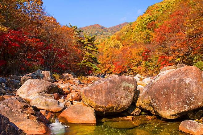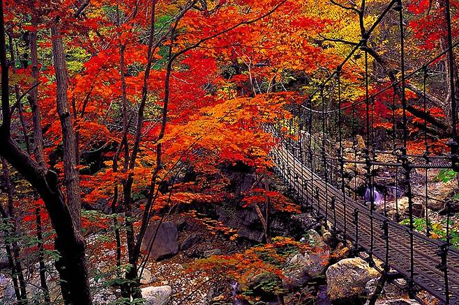 울긋불긋한 가을옷으로 갈아입기 시작한 피아골 단풍은 지리산 국립공원의 탐방코스예요.