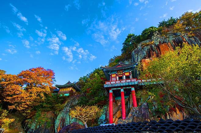 구름바다가 펼쳐지는 가을 대표 명소인 구례 사성암은 기암절벽 위에 있어 무척 신비로운 곳이에요.