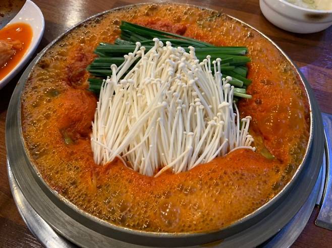 네 번째로 소개할 맛집은 '을왕리 짱구네'입니다. 이곳의 대표 메뉴는 산낙지를 통째로 넣어 만든 낙지전골입니다. '빨간거'와 '하얀거'로 불리는 메뉴는 각각 매콤한 낙지전골과 맑은 국물의 연포탕을 의미합니다.