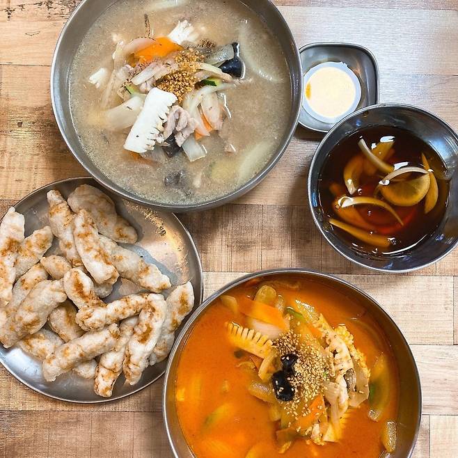 국물은 북어를 넣어 끓여내어 뽀얗고 시원한 맛을 자랑하며, 쫄깃한 식감의 조랭이 떡이 들어 있어 식감도 훌륭합니다. 산낙지나 전복을 추가해 칼국수에 넣어 먹으면 더욱 풍성한 해물의 맛을 느낄 수 있으니 꼭 한번 시도해보세요.