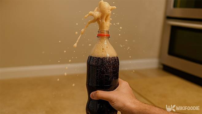 반면, 병을 거꾸로 하면 뚜껑이 콜라에 직접 닿게 되어 뚜껑과 내부 공기 공간의 접촉이 줄어든다. 이 상태에서는 탄산이 위로 이동하는 경로가 콜라로 인해 막혀 이동이 느려진다. 이에 따라 뚜껑과 콜라 사이에 공기층이 사라져 내부 압력이 안정적으로 유지되고, 탄산의 급격한 분출 정도가 감소하여 탄산이 더 오랫동안 콜라 속에 유지된다.