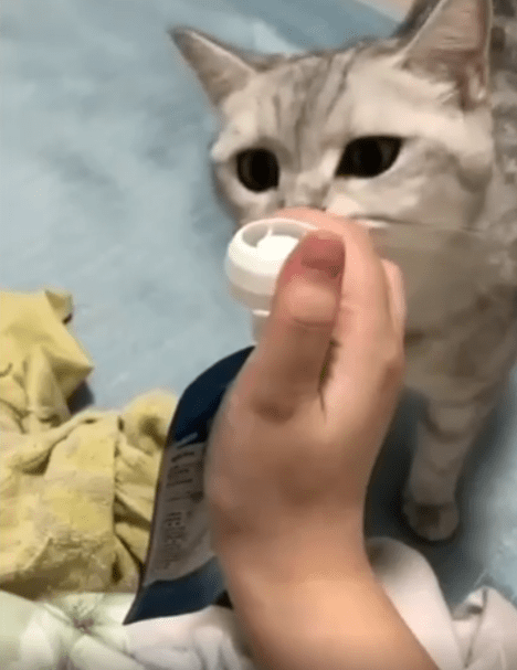 주인이 무심히 간식 팩의 뚜껑을 여는 그 순간, 화면 바깥 어딘가에서 고양이 한 마리가 번개처럼 튀어나옵니다. 정말 말 그대로 ‘순간이동’에 가까운 속도. 눈이 따라갈 틈도 없이 등장한 이 고양이는 곧장 시선 고정, 목표는 단 하나—그 간식입니다.