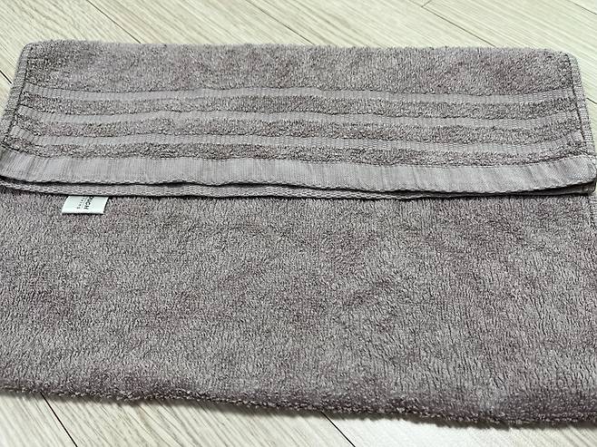 접었을 때 이렇게 길쭉한 직사각형 형태로 완성됩니다. 이 방법으로 접으면 수납장, 서랍에 가지런히 쌓아서 넣기 좋습니다.