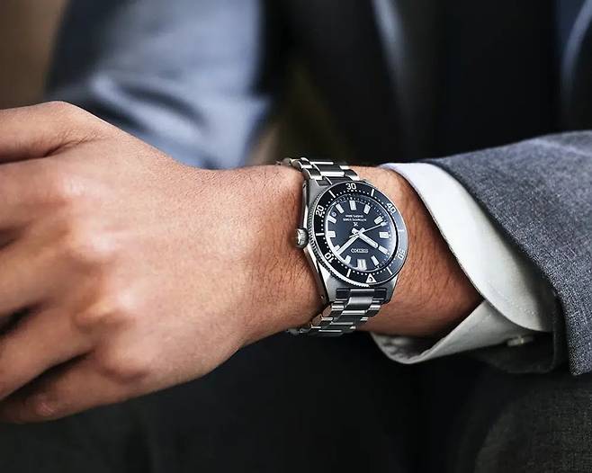 현대적인 모습으로 바뀐 단방향 회전 베젤에는 알루미늄 인서트가 탑재됐고, 다이빙 스케일은 레이저로 정교하게 각인됐다. 스크류 다운 크라운은 케이스 안으로 살짝 들어간 형태다. 4시와 5시 사이에 배치된 날짜창은 배경색도 검정색으로 맞춰 다이얼과 조화를 이룬다. 직선적인 바 인덱스는 오리지널 워치보다 부드러워졌다. 케이스백은 솔리드 타입으로 단단히 닫혀 있으며, 그 위에는 세이코의 상징인 웨이브 엠블럼을 장식했다. 내부에는 72시간 파워 리저브를 제공하는 오토매틱 칼리버 6R55를 담았다. 세이코는 3연 브레이슬릿도 새롭게 디자인했다. 러그와 링크가 전작에 비해 짧아져 보다 편안한 착용감을 보장한다. 222만 원.
