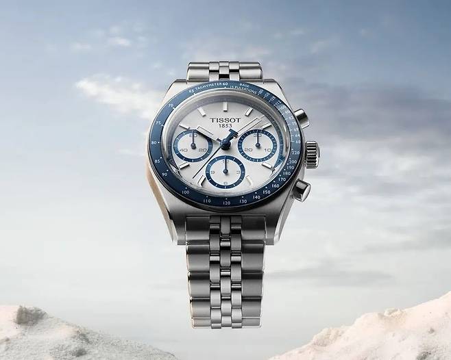 지난해 티쏘는 1970년대 스타일을 그대로 담은 복각 시계를 선보였고 올해는 스포티한 화이트와 블루 컬러로 컬렉션을 구성했다. 시계는 지름 41mm로 여성에게 조금 클 수 있지만 남성에게 잘 어우러지는 사이즈다. 가운데가 뭉툭하고 끝으로 갈수록 얇아지는 테이퍼드 케이스는 제임스 본드가 착용한 PR516을 떠오르게 한다. 스테인리스 스틸 베젤에는 시원한 블루 컬러 미네랄 글라스 인서트를 적용했다. 다이얼과 인덱스, 핸즈 모두 화이트 컬러로 꾸려 통일감을 줬고 3시와 6시, 9시 방향에 올라간 카운터 테두리만 블루 컬러를 적용해 포인트를 줬다. 여기에 5연 브레이슬릿까지 장착해 빈티지한 분위기를 더한다. 100m 방수 성능을 갖춰 일상에서 착용하기도 좋다.