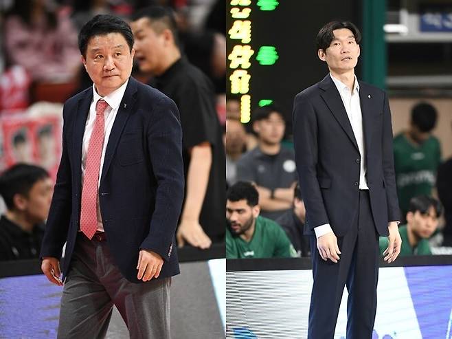 사진 설명 = 왼쪽부터 유도훈 정관장 감독-김주성 DB 감독