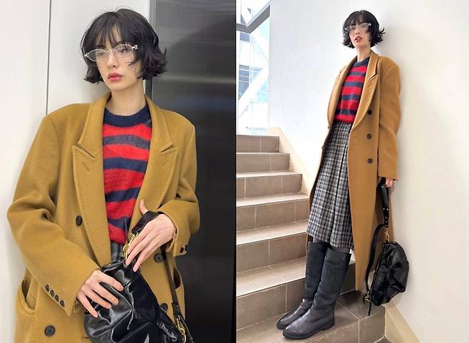 특히 유니크한 블랙 롱부츠와 핸드백은 룩의 균형을 잡아주는 동시에 도시적인 분위기를 더했으며, 나나 특유의 시크한 헤어와 투명한 안경은 독보적인 개성을 강조했습니다.