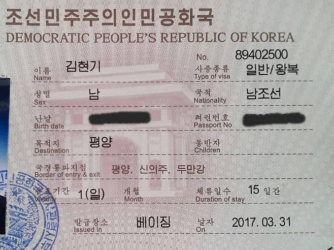 그러다보니 동행한 통일부 공무원들 중에서도 "평양에 몇 번 가봤지만 이런 비자 받고 가는 것은 처음"이라는 나왔다. 그러면서 "국적에 뭐라고 적었나"라는 얘기도 나왔다.