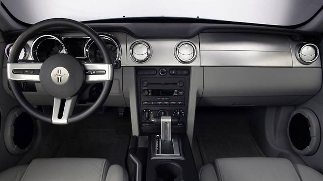 실내도 전성기 머스탱의 분위기와 21세기 스타일 흐름이 어우러졌다. 대시보드는 복고 스타일을 살렸다. 좌우 대칭으로 부풀린 이른바 '듀얼 콕핏(dual cockpit)' 형태의 대시보드는 각을 살리고 모서리를 다듬었다. 그 전 세대 머스탱 역시 비슷한 주제를 따랐지만 유연한 곡선과 곡면으로 이루어진 모습은 스포티하다고 이야기하기는 어려웠다. 새 머스탱에서는 대시보드 양쪽으로 부푼 부분에 각을 주면서 실내가 더 넓어 보이는 효과를 내면서 1세대 모델과 비슷한 느낌이 더 뚜렷했다.