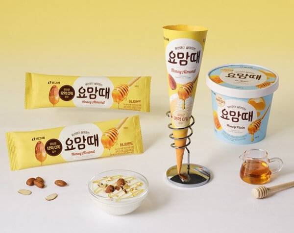 빙그레는 2004년 출시된 요거트 아이스크림 요맘때의 20주년을 맞아 제품군을 확대했다. 빙그레는 과일 외에도 다양한 토핑을 선호하는 트렌드를 반영해 소비자 조사 결과 선호도가 높은 꿀과 아몬드를 활용한 ‘허니아몬드’와 ‘허니플레인’을 바, 콘, 카톤 형태로 출시했다. 기존 제품 패키지에는 유산균 수를 기재했다. 요거트의 산뜻하고 깔끔한 이미지에 디자인 요소를 더해, 아이스크림 매대에서 요거트 아이스크림으로 눈에 띌 수 있게 단장했다. 요맘때 브랜드의 대표 제품인 요맘때 딸기바의 편의점 기준 판매가는 1,500원이다.